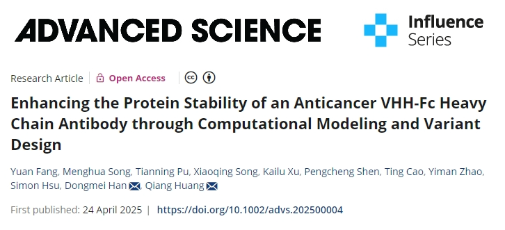 近日,DB视讯技术运营团队与复旦大学黄强教授课题组在抗肿瘤治疗领域取得了重要进展。双方针对抗肿瘤治疗用VHH-Fc抗体(VFA01),开发了一套基于计算机模拟(in silico)的综合分析流程,利用人工智能(AI)技术系统评估其蛋白稳定性,并结合实验验证,成功设计出稳定性显著提升的新变体。该成果发表于国际知名期刊Advanced Science上。