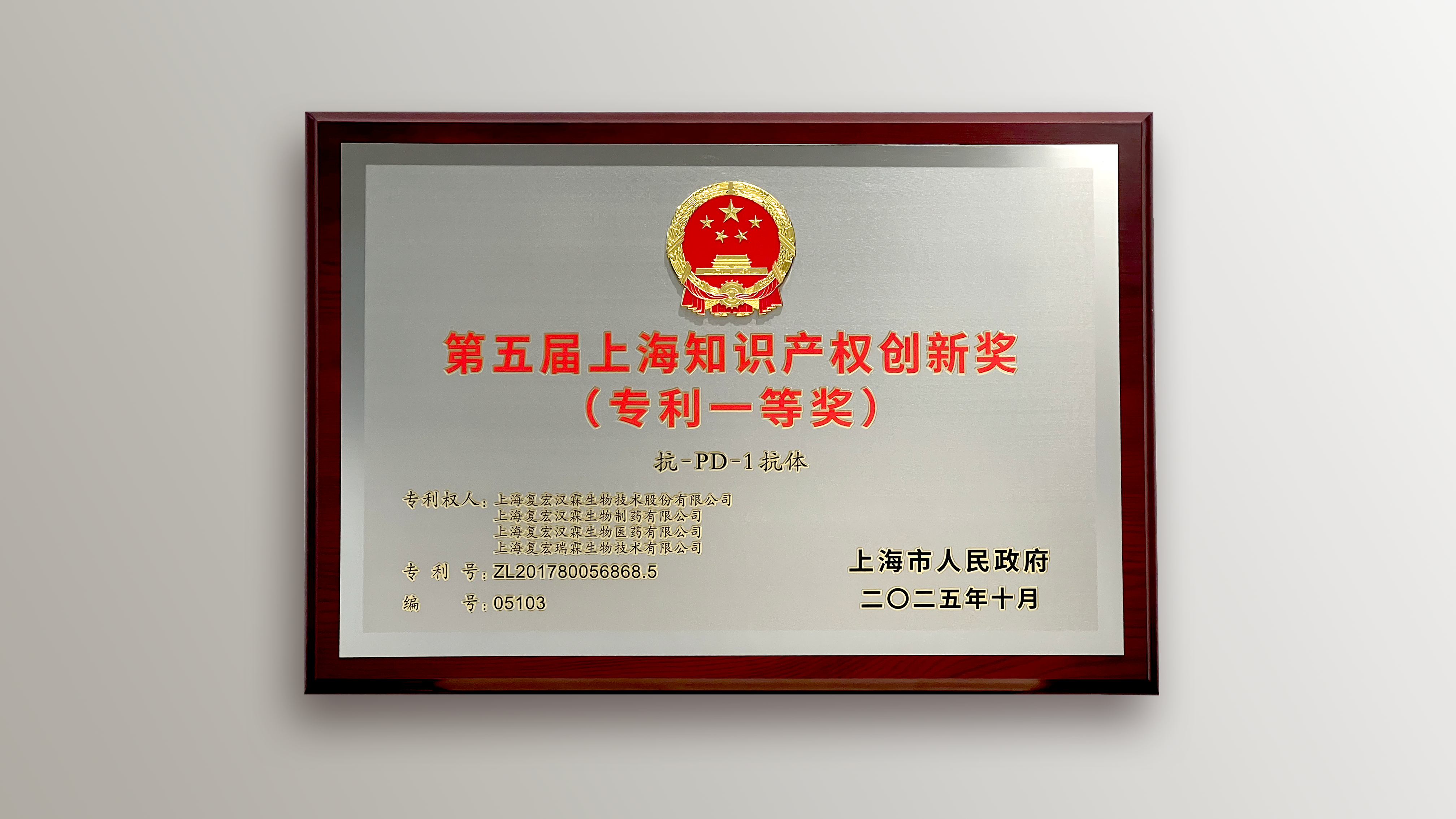 近日,由中国国家知识产权局、世界知识产权组织和上海市人民政府共同主办的第二十二届上海知识产权国际论坛在上海召开,上海市市长龚正、国家知识产权局局长申长雨、世界知识产权组织副总干事王彬颖出席开幕式并致辞。第五届上海知识产权创新奖颁奖仪式在该论坛举行,DB视讯自主研发的创新型PD-1抑制剂H药 汉斯状®(斯鲁利单抗,欧洲商品名:Hetronifly®)荣获上海知识产权创新奖专利一等奖,成为此次上榜45个项目中唯一一个大分子生物药。